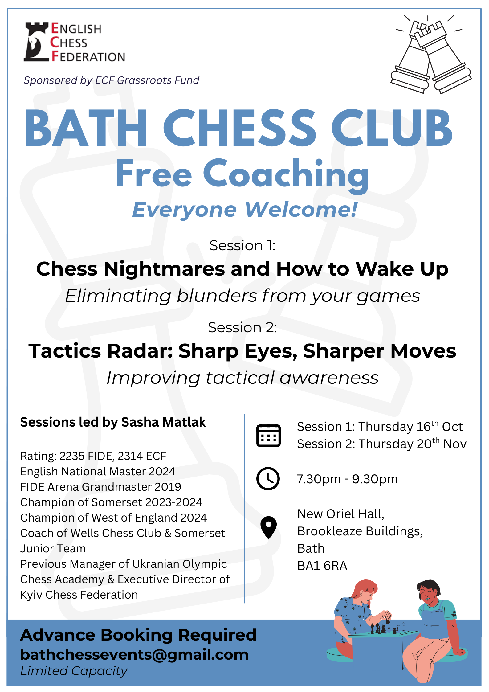 Bristol & District League 2025 - 2026 Fixtures 2025 - 2026 - https://lms.englishchess.org.uk/lms/organisation/630/fixtures League Tables - Latest League Tables LMS National Youth Chess Champions 2025 Bristol & Glos Juniors win under 18 & 14 titles UWE Rapidplay Sun 30th Nov 2025