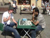 Sunday Chess in Bath Join us this coming Sunday for a game of chess in the sun ! Next date will be 4th July Please feel free to join in The street chess session went very well on Sunday, with loads of players about and twelve taking part in an all-play-all blitz tournament. The tournament had a very strong top end, with Chris Dorrington(217), Peter Poobalisingam(197), James Jackson(194), Jerry Humphreys(175) and a visitor from Norfolk county chess - Brian Jeffery(162) making up the top end. Several visitors to Bath also stopped to take part in competition and a friendly, if frantic(!), event ensued. The play went quickly with the trials of organising an all-play-all, without much planning, being overcome by everyone helping to sort out the pairings. Visitors to Bath were entertained for two hours as the blitz action kept the players busy, with all eleven rounds being played without a drop of rain! Meanwhile, the giant board saw plenty of use by locals and tourists alike, with occasional amusing interuptions from the Natural Theatre company, part of the city's fringe festival which is on at the moment. Chris Dorrington won the proceedings outright, with an unassailable 11/11 - a typical solid performance from Chris. Tom Thorpe also deserves a mention for getting a very worthy 7/11, clearly a player to watch out for in tourament play. Many thanks to all those who took part. The next Sunday chess session is on Sunday June 20, 2-5pm. bath street blitz results.xls Held outside Bath Abbey on 6th June 2010