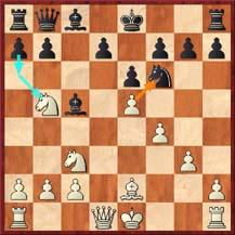 Black can also consider exchanging on e5 and then playing Ne8 but that is inconsistent. At least by playing Ne8 first Black retains the option of exchanging on e5 or playing .d6-d5. Nevertheless, to see this retreat instead of the sharp 18...dxe5; 19 fxe5 Ng4 from a GM was a considerable morale boost.
